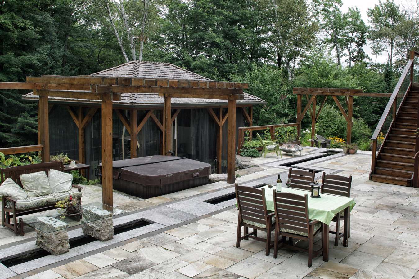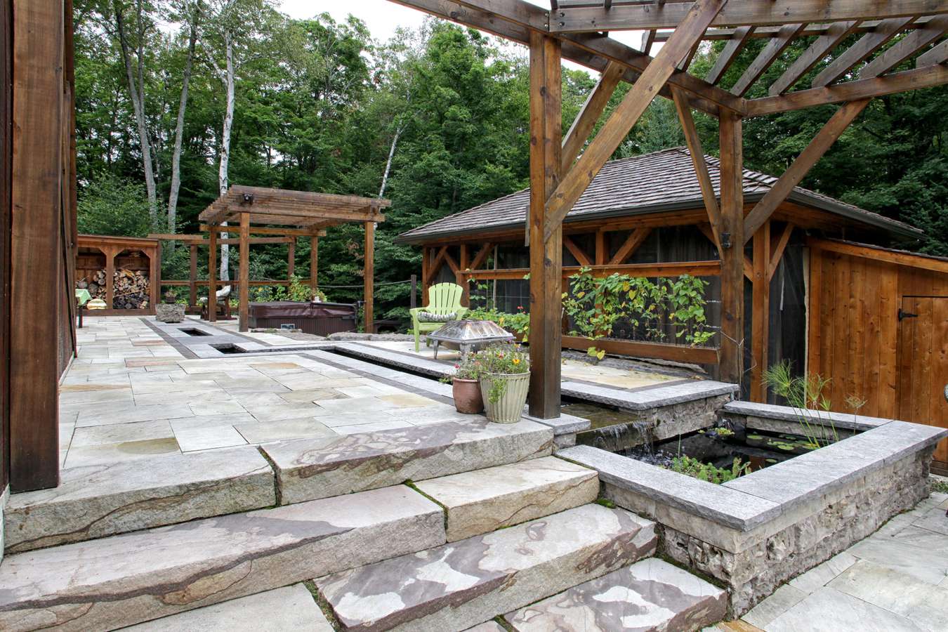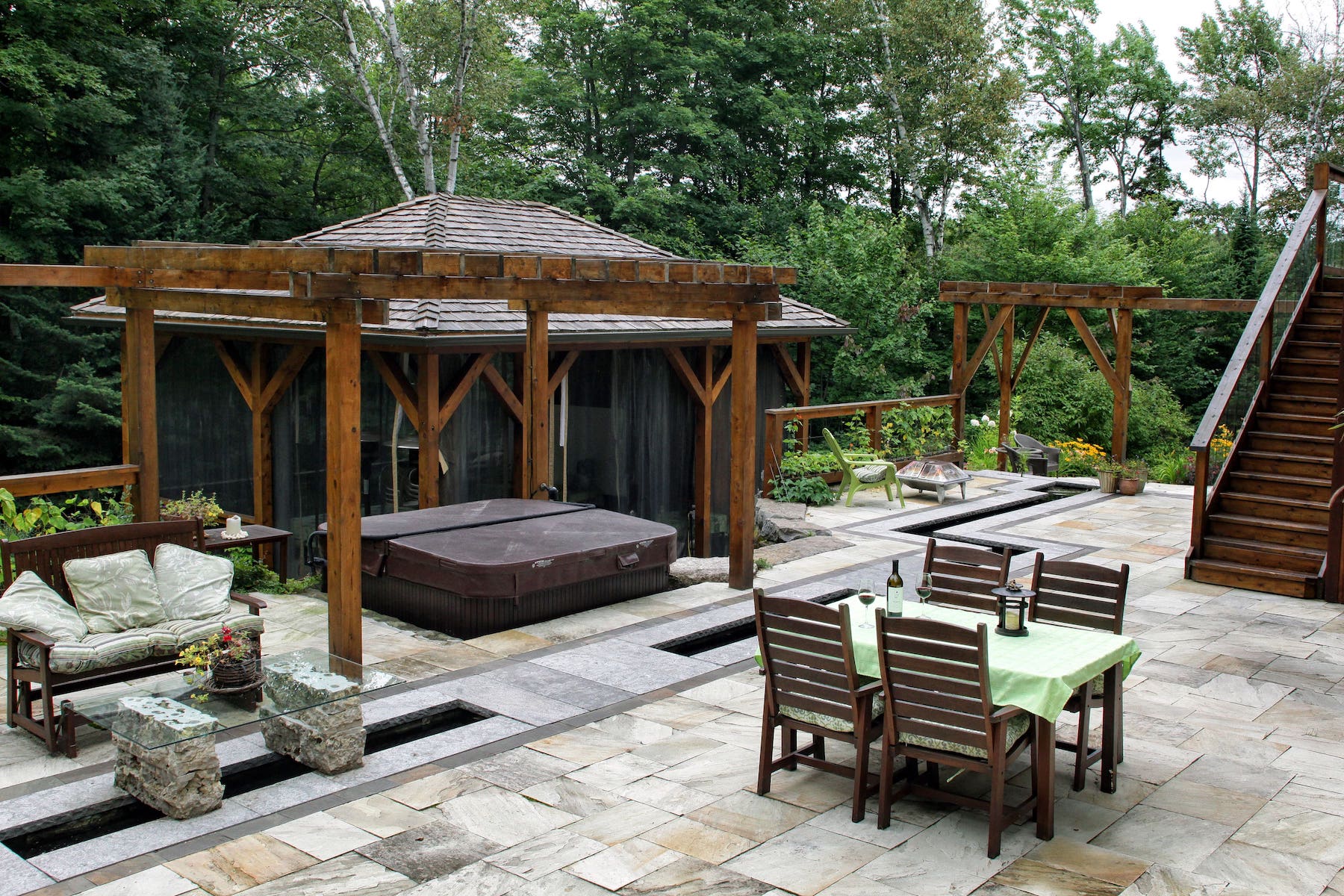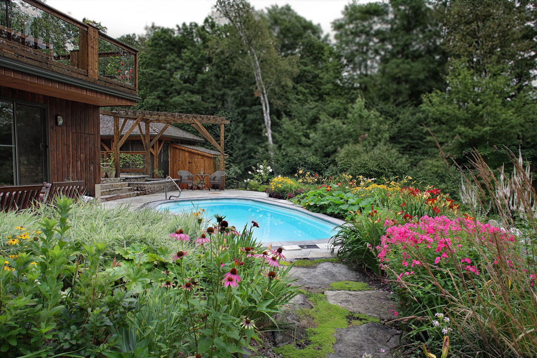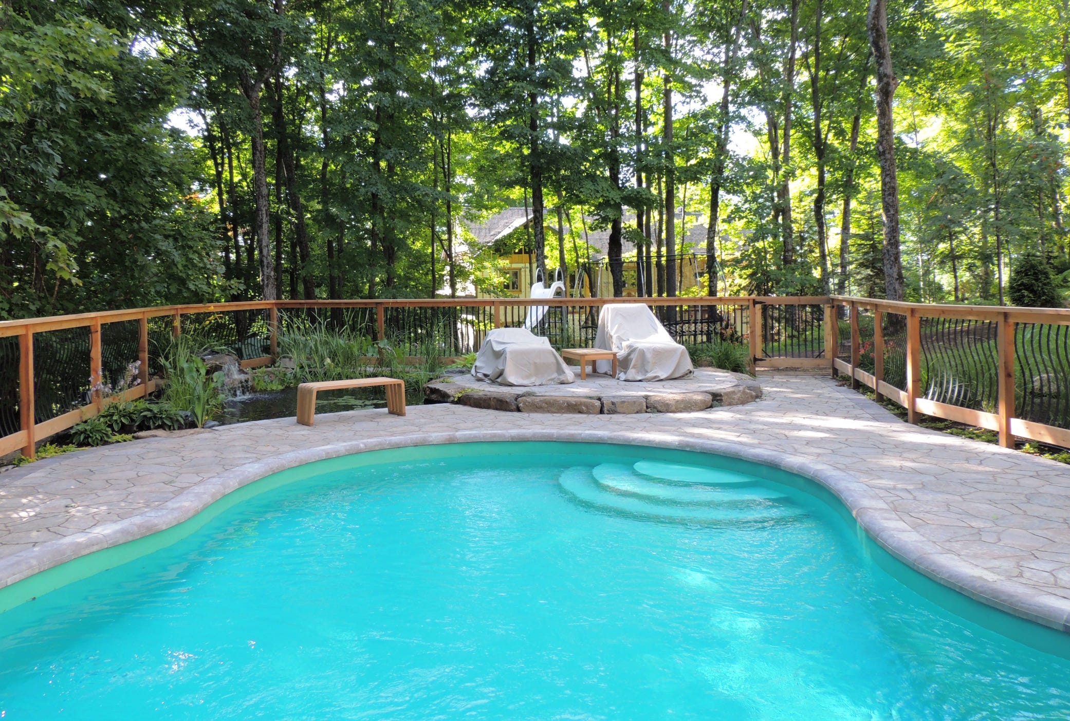 Of an enchanting nature, this unique design in symbiosis with the environment harmonizes marvelously the elegance of the natural stone and the warm side with its woodworks. The topography of the terrain lent itself perfectly to the development of several levels.